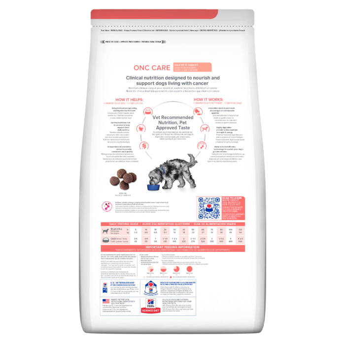 Hill’s Prescription Diet® ONC Care Dry Dog Food is a complete therapeutic diet formulated by veterinary nutritionists to support adult dogs living with serious conditions such as cancer. The formula uses highly digestible protein and a flavourful design to encourage eating even when appetite is reduced.